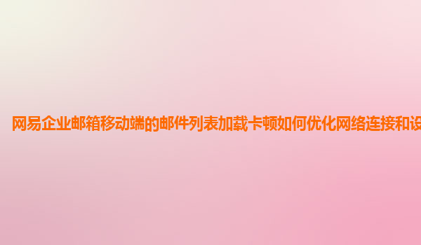 2024-11-08如何优化网易企业邮箱移动端邮件列表加载卡顿问题 随着移动办公的普及,越来越多的企业和员工依赖手机和平板电脑来处理日常邮件工作。然而,在使用网易企业邮箱的过程中,部分用户会遇到邮件列表加载卡顿的问题...
