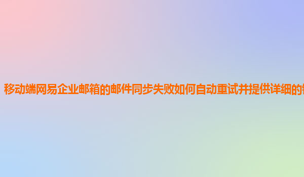 2024-11-08移动端网易企业邮箱的邮件同步失败如何自动重试并提供详细的错误报告 在当今快节奏的商业环境中,稳定、高效的邮件系统对企业沟通和管理至关重要。网易企业邮箱以其卓越的服务和可靠的安全性广受企业用户欢迎。...