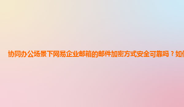 2024-11-08协同办公场景下网易企业邮箱的邮件加密方式安全可靠吗?如何选择? 1.网易企业邮箱的安全加密措施 网易企业邮箱在邮件安全方面具备多层次的加密机制,确保邮件在传输、存储以及使用中的安全性。具体包括: ...