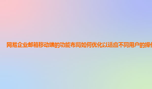 2024-11-08如何优化网易企业邮箱移动端的功能布局以适应不同用户的操作习惯 网易企业邮箱的优势 网易企业邮箱作为国内领先的企业邮箱服务提供商,以其稳定的性能和丰富的功能赢得了众多用户的青睐。首先,网易企业邮...