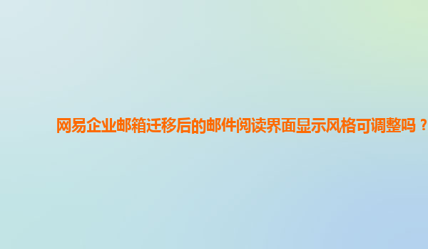 2024-11-07网易企业邮箱迁移后邮件阅读界面的显示风格及其调整优势 邮件阅读界面风格多样化,提升用户体验 网易企业邮箱在迁移后的邮件阅读界面上提供了多种显示风格选项,满足不同用户的个性化需求。用户可以根据个...