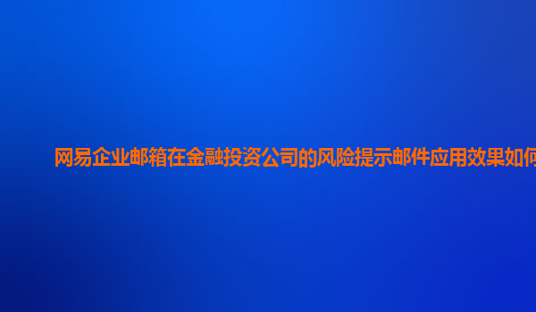 2024-11-07网易企业邮箱在金融投资公司风险提示邮件应用效果分析 1.网易企业邮箱的独特优势 网易企业邮箱在金融投资行业的风险提示邮件应用中表现出众,主要体现在以下几个方面: 安全防护能力强:网易...