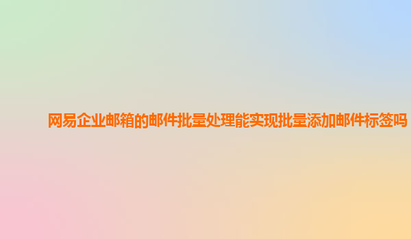2024-11-06网易企业邮箱的邮件批量处理与批量添加邮件标签功能分析 在如今信息化办公的环境中,企业邮箱已成为团队沟通和信息管理的重要工具。网易企业邮箱作为国内领先的企业邮件服务平台,其强大的功能和灵活的操作方式为企...