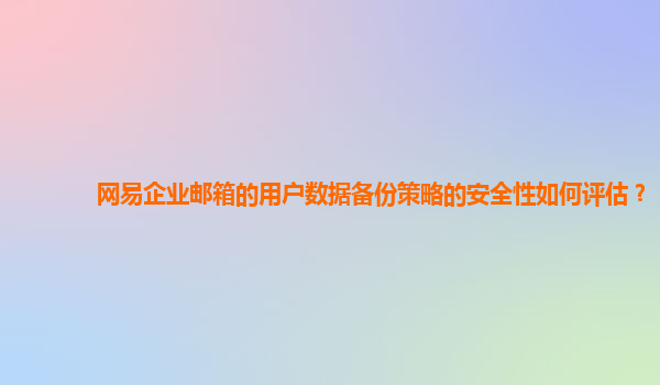 2024-11-04网易企业邮箱的用户数据备份策略安全性评估 随着信息化时代的到来,企业对数据安全的关注愈加重视。网易企业邮箱作为国内知名的企业邮箱服务提供商,其数据备份策略的安全性成为了众多用户关注的焦点。本文将从网易...