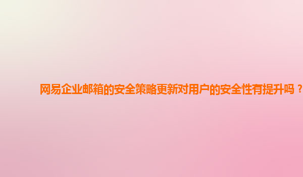 2024-11-04网易企业邮箱安全策略更新对用户安全性的提升分析 引言 在数字化时代,企业邮箱作为企业内部和外部沟通的重要工具,其安全性显得尤为重要。网易企业邮箱凭借其强大的技术实力和丰富的行业经验,持续优化安全策略,...