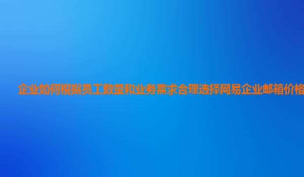 2024-11-04企业如何根据员工数量和业务需求合理选择网易企业邮箱价格套餐 在信息化迅猛发展的今天,企业邮箱已成为企业沟通与协作的重要工具。网易企业邮箱凭借其稳定性、安全性及丰富的功能,成为许多企业的首选。然而,面对...