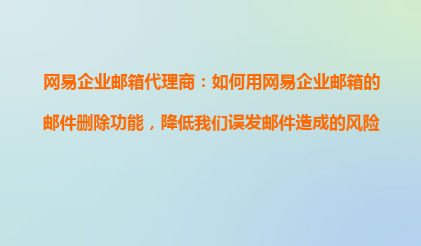 2025-10-23网易企业邮箱代理商:如何用网易企业邮箱的邮件删除功能,降低误发邮件风险? 一、误发邮件的风险与网易企业邮箱的价值 在企业日常沟通中,误发邮件可能导致商业机密泄露、客户信任感下降甚至法律纠纷...