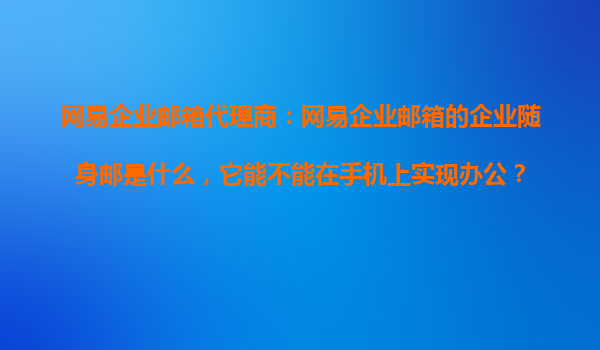 2025-10-23网易企业邮箱代理商:网易企业邮箱的企业随身邮是什么,它能不能在手机上实现办公? 在当今移动互联网时代,企业办公早已不再局限于传统的PC端,移动办公的需求日益增长。网易企业邮箱作为国内领先的...