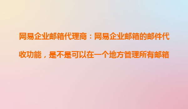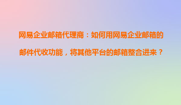 网易企业邮箱代理商:如何用网易企业邮箱的邮件代收功能整合其他平台邮箱? 一、网易企业邮箱邮件代收功能简介 作为国内领先的企业邮箱服务商,网易企业邮箱提供的邮件代收功能(也称为POP3...