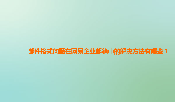 2024-11-03网易企业邮箱的问题解决方法 随着信息化的快速发展,企业在日常运营中对邮箱的依赖程度越来越高。网易企业邮箱作为一款专业的企业邮件服务,凭借其稳定性和安全性,成为了众多企业的首选。然而,用户在使用过程中也...