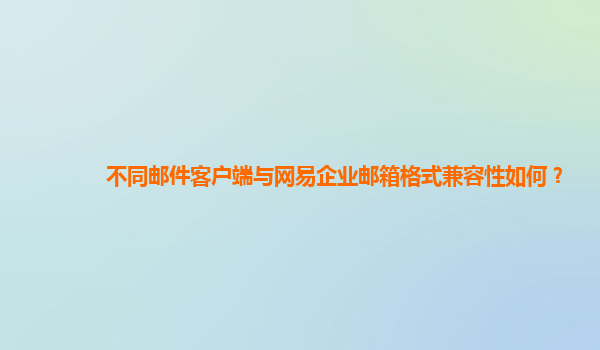 2024-11-03不同邮件客户端与网易企业邮箱格式兼容性分析 随着互联网的发展,企业邮箱在日常工作中的作用愈发重要。网易企业邮箱作为国内知名的邮箱服务提供商之一,凭借其稳定性和安全性受到众多企业的青睐。然而,在使用过程...