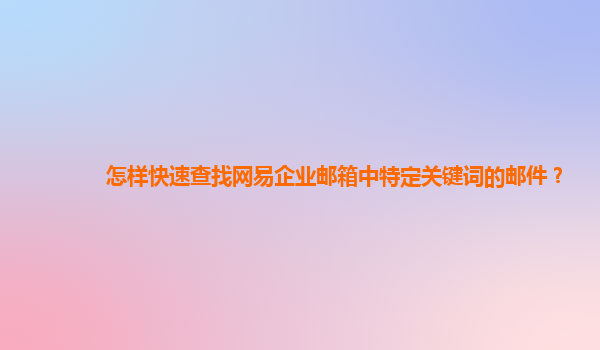 2024-11-01怎样快速查找网易企业邮箱中特定关键词的邮件? 在现代企业办公中,邮箱是信息沟通的重要工具。网易企业邮箱凭借其强大的功能和稳定的性能,受到许多企业的青睐。然而,随着邮件数量的增加,如何快速查找特定关键词...