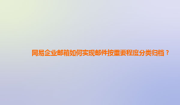2024-11-01网易企业邮箱如何实现邮件按重要程度分类归档 在现代商业环境中,企业邮箱已成为日常沟通的基础工具。尤其是网易企业邮箱,以其稳定性和丰富的功能深受企业用户的喜爱。本文将探讨如何利用网易企业邮箱实现邮件按重...