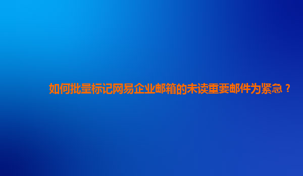 2024-11-01如何批量标记网易企业邮箱的未读重要邮件为紧急 引言 在现代企业管理中,邮件沟通是不可或缺的组成部分。网易企业邮箱以其强大的功能和用户友好的界面,受到众多企业的青睐。然而,在繁忙的工作中,如...