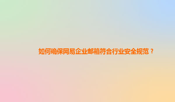 2024-10-31如何确保网易企业邮箱符合行业安全规范? 在信息化快速发展的时代,企业邮箱作为沟通和信息传递的重要工具,其安全性越来越受到重视。网易企业邮箱凭借其优越的安全性能和多重保障措施,帮助企业更好地遵循行业安全...