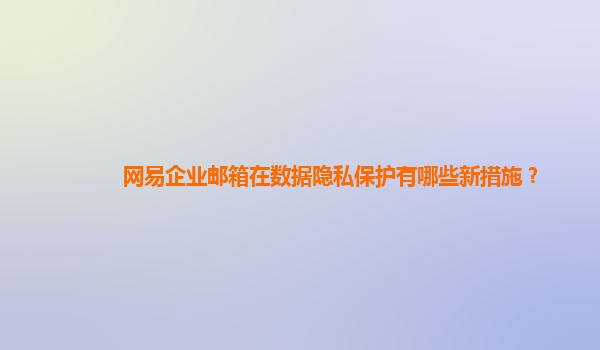 2024-10-31网易企业邮箱在数据隐私保护方面的新措施 在数字化时代,企业数据隐私保护愈发受到重视。作为国内知名的企业邮箱服务提供商,网易企业邮箱在这一领域不断创新,推出了一系列新措施,以确保用户数据的安全与隐私。本...