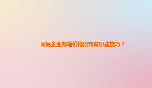 2024-10-31网易企业邮箱价格谈判技巧 一、了解网易企业邮箱的优势 在进行价格谈判之前,首先要充分了解网易企业邮箱的优势。这不仅能帮助你在谈判中有理有据,更能有效提高谈判成功的几率。网易企业邮箱作为国内领先的企业邮...