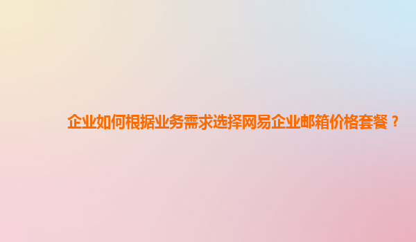 企业如何根据业务需求选择网易企业邮箱价格套餐 在当今数字化时代,企业邮箱作为企业沟通和信息管理的重要工具,已经成为每个企业不可或缺的部分。网易企业邮箱凭借其稳定性、安全性和丰富的功能,受到了许多企业的...