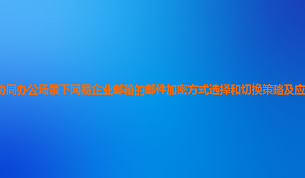 2024-10-30网易企业邮箱的邮件加密选择与应用场景分析 一、引言 在现代企业的协同办公环境中,数据和信息的安全至关重要。网易企业邮箱通过全面的邮件加密策略和灵活的功能设置,不仅满足了企业对数据隐私的高要求,还...
