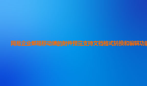 2024-10-30网易企业邮箱:移动端附件预览、转换及编辑功能解析 随着企业对灵活办公需求的日益增长,网易企业邮箱在移动办公和附件处理方面的优势越发显著。通过移动端支持的多样功能,用户不仅能够随时随地高效预览附件,还...