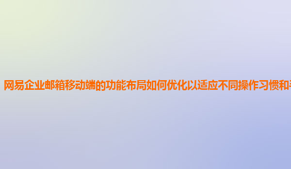 2024-10-30网易企业邮箱移动端功能布局优化建议 随着移动办公需求的增加,企业邮箱逐渐成为商务沟通中不可或缺的工具。而网易企业邮箱凭借其强大的功能和稳定的服务,成为众多企业的首选。为了提升用户在移动端的使用体验...