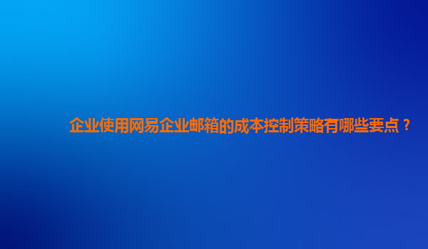 2024-10-28企业使用网易企业邮箱的成本控制策略要点 随着企业对电子邮件通信需求的不断增加,选择高效且成本可控的企业邮箱成为众多企业的核心关注点。网易企业邮箱凭借其稳定、安全、易用的特性,成为众多企业的首选。然...