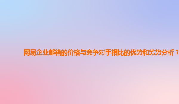 网易企业邮箱的价格与竞争对手相比的优势和劣势分析 1.网易企业邮箱的优势 作为国内知名的企业邮箱服务提供商,网易企业邮箱在功能、服务及安全性方面具备显著优势,具体如下: 功能齐全:网易...
