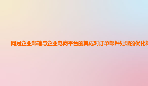 2024-10-28网易企业邮箱与企业电商平台的集成对订单邮件处理的优化策略 在当前竞争激烈的电子商务环境中,高效的订单处理对企业的成功至关重要。企业电商平台每日处理大量订单,每笔订单涉及多个流程,包括确认订单、物流...
