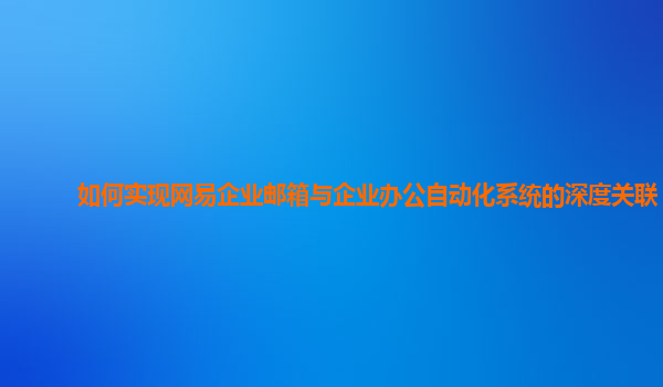 2024-10-28如何实现网易企业邮箱与企业办公自动化系统的深度关联 随着企业信息化建设的不断推进,企业邮箱与办公自动化系统的深度集成变得尤为重要。网易企业邮箱以其稳定性、安全性及多平台兼容性受到广泛青睐,而网易企业...