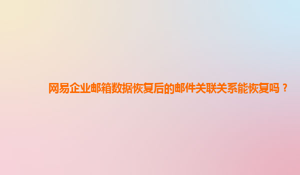 2024-10-27网易企业邮箱数据恢复及邮件关联关系恢复的可行性探讨 随着企业邮箱在现代办公环境中的广泛应用,数据安全与邮件恢复成为各大企业关注的重点。网易企业邮箱作为国内领先的企业邮箱服务商,具备出色的数据恢复能...