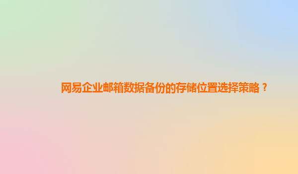 2024-10-27网易企业邮箱数据备份的存储位置选择策略 对于企业邮箱用户而言,数据备份和存储位置的选择是保障信息安全与业务连续性的重要环节。网易企业邮箱凭借其高效的邮件管理和数据备份服务成为众多企业的首选,本...