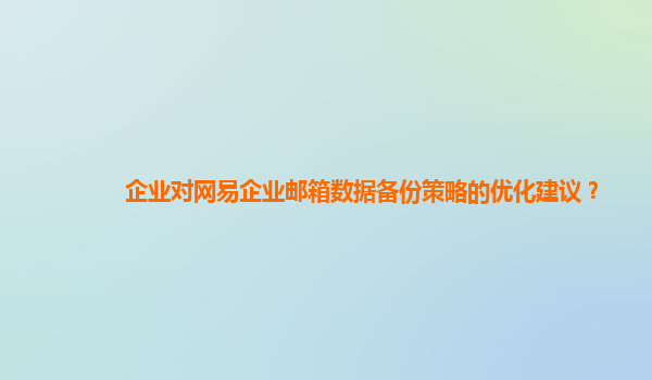 2024-10-27企业对网易企业邮箱数据备份策略的优化建议 随着信息化时代的快速发展,企业的日常运营越来越依赖于电子邮件系统,尤其是像网易企业邮箱这样具有高效、安全和稳定性的企业邮箱系统。网易企业邮箱不仅仅是一种通信...