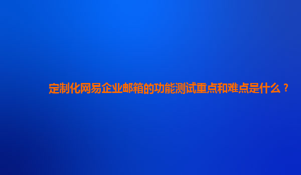 定制化网易企业邮箱的功能测试重点和难点 网易企业邮箱作为国内领先的企业级邮件服务商,以其稳定性、安全性和智能化管理功能深受企业用户青睐。在进行定制化功能测试时,不仅需要针对网易企业邮箱的核心优势进行...