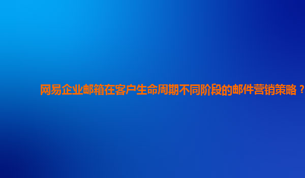 2024-10-27网易企业邮箱在客户生命周期不同阶段的邮件营销策略 一、网易企业邮箱的优势 网易企业邮箱凭借25年技术积累,提供了稳定且安全的服务,其垃圾邮件拦截率高达99.99%,并为超过100万企业提供支持。此外,网...