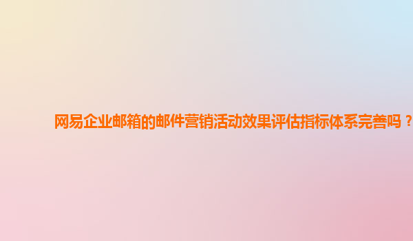 2024-10-27网易企业邮箱邮件营销活动效果评估指标体系的完善性分析 随着互联网和电子邮件的普及,电子邮件营销已成为企业提升品牌影响力、增加用户粘性的重要手段。网易企业邮箱作为国内知名的企业邮箱服务提供商,在邮件...