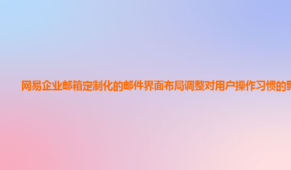 2024-10-27网易企业邮箱定制化邮件界面布局调整对用户操作习惯的影响 引言 在信息化高度发达的今天,企业邮箱已成为日常工作中不可或缺的沟通工具。网易企业邮箱作为国内知名的邮箱品牌,凭借其强大的功能和卓越的用户...