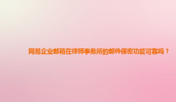 2024-10-26网易企业邮箱在律师事务所的邮件保密功能可靠吗? 1.引言 随着信息时代的发展,律师事务所越来越依赖电子邮件来处理敏感和机密的案件信息。在这种情况下,保护客户数据的安全和保密性变得至关重要。本文将探讨...