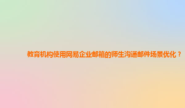 2024-10-26优化教育机构使用网易企业邮箱的师生沟通邮件场景 随着互联网和信息技术的发展,电子邮件已成为人们日常生活中必不可少的沟通工具之一。在教育机构中,师生之间的邮件沟通也变得越来越频繁。为了提高师生之间的邮件...