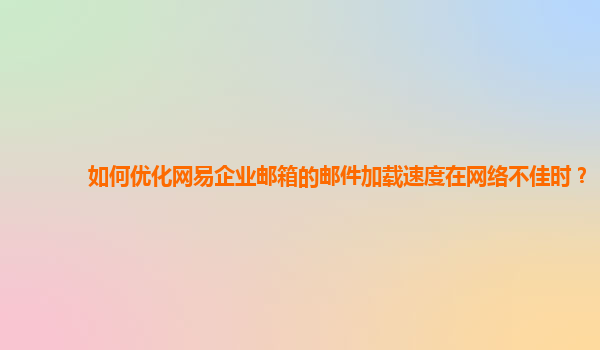 2024-10-26如何优化网易企业邮箱的邮件加载速度在网络不佳时? 在现代社会中,电子邮件已成为人们日常工作和生活中不可或缺的一部分。而作为企业级邮箱服务提供商,网易企业邮箱以其稳定的性能和丰富的功能受到了广大用户的青...