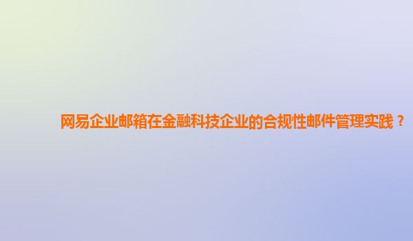 2024-10-26网易企业邮箱在金融科技企业的合规性邮件管理实践 网易企业邮箱的优势 作为一家领先的互联网企业,网易企业邮箱拥有稳定可靠的邮件服务平台,全面覆盖企业级邮箱需求。其安全防护、灵活扩展和易用性等特点使得...