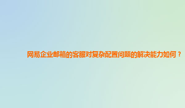 2024-10-25网易企业邮箱的客服对复杂配置问题的解决能力如何? 随着互联网技术的发展和企业信息化水平的提高,电子邮箱作为企业日常沟通和业务交流的重要工具,受到越来越多企业的重视。网易企业邮箱以其高效、稳定和安全的...