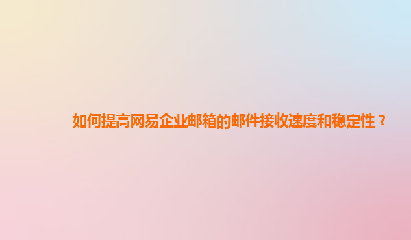 2024-10-25如何提高网易企业邮箱的邮件接收速度和稳定性 在现代商业环境中,企业邮件的接收速度和稳定性对于提高工作效率、保障信息传递的及时性至关重要。网易企业邮箱作为国内领先的企业邮件服务提供商,以其高效稳定的...