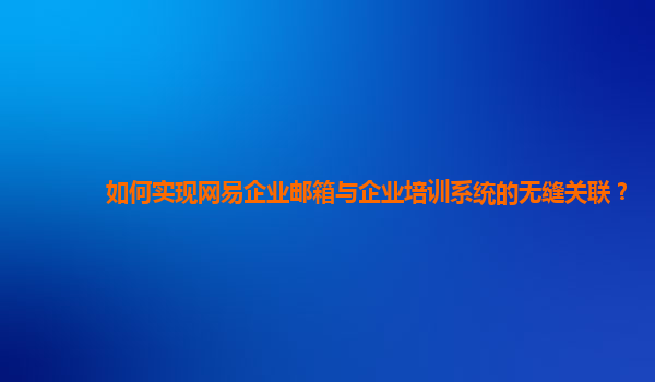 2024-10-24如何实现网易企业邮箱与企业培训系统的无缝关联? 一、简介 企业邮箱是企业日常沟通和邮件管理的重要工具,而企业培训系统则是用于组织、管理和实施企业内部培训的平台。将网易企业邮箱与企业培训系统进行无缝关联...