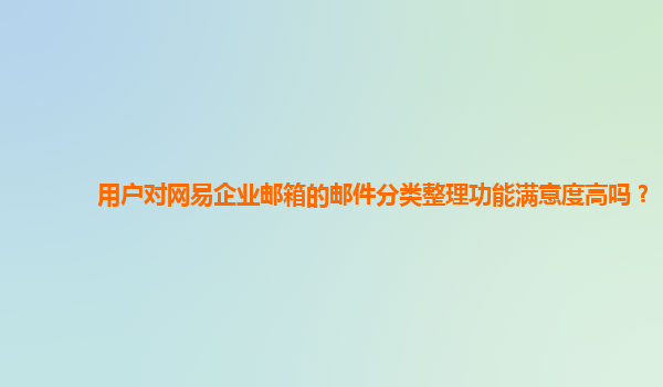 2024-10-24用户对网易企业邮箱的邮件分类整理功能满意度分析 网易企业邮箱的优势 作为国内知名的企业邮箱服务提供商,网易企业邮箱具有诸多优势: 稳定可靠:网易企业邮箱拥有强大的服务器支持,保证邮...
