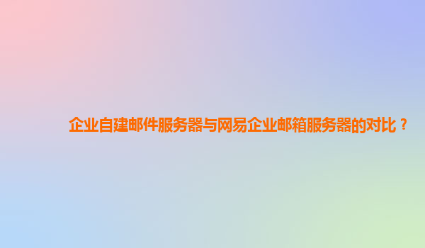 2024-10-21企业自建邮件服务器与网易企业邮箱服务器的对比 在现代企业中,邮件通信作为日常业务交流的重要手段,发挥着关键作用。面对企业日益增长的通信需求,企业自建邮件服务器和使用网易企业邮箱这两种选择成为焦点。...