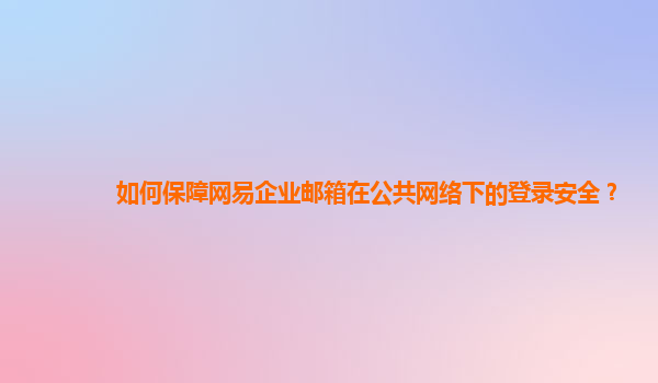 如何保障网易企业邮箱在公共网络下的登录安全? 随着互联网的快速发展,企业邮箱已经成为公司日常运作中不可或缺的工具。而在公共网络环境下,如何保障网易企业邮箱的登录安全成为了企业管理者们十分关注的问题。本...