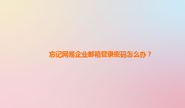 2024-10-21忘记网易企业邮箱登录密码怎么办? 忘记密码是很多人在使用邮箱过程中经常遇到的问题,尤其是在使用网易企业邮箱时。如果您遇到这种情况,不必慌张,本文将为您详细介绍如何解决忘记网易企业邮箱登录密码的问...