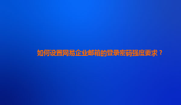 2024-10-21如何设置网易企业邮箱的登录密码强度要求 在如今的信息化社会中,企业邮箱的安全性至关重要。网易企业邮箱作为国内领先的企业邮箱服务提供商,具备高度安全性和稳定性,因此,合理设置登录密码的强度尤为关键。本...