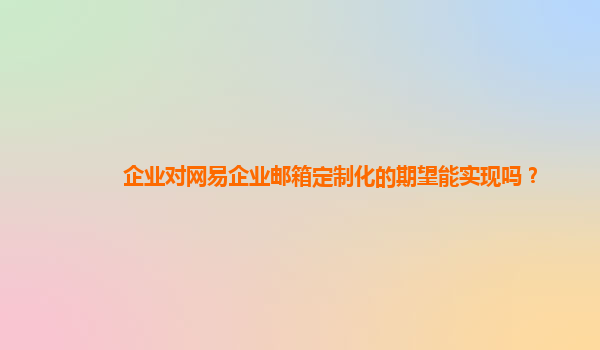 2024-10-20企业对网易企业邮箱定制化的期望能实现吗? 随着信息化时代的不断发展,电子邮件已成为企业沟通和管理中不可或缺的工具。企业对电子邮箱的需求不仅局限于基础的邮件收发,还包括更高的定制化要求,以满足不同行...