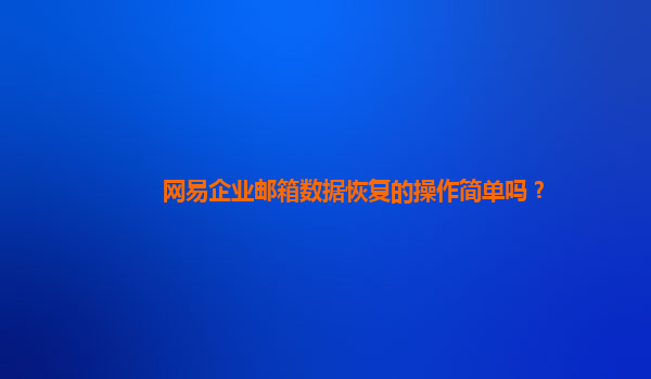 2024-10-20网易企业邮箱数据恢复的操作简单吗? 网易企业邮箱的优势 在讨论网易企业邮箱的数据恢复操作是否简单之前,首先有必要了解网易企业邮箱本身的优势。网易企业邮箱作为中国领先的邮件服务提供商之一...